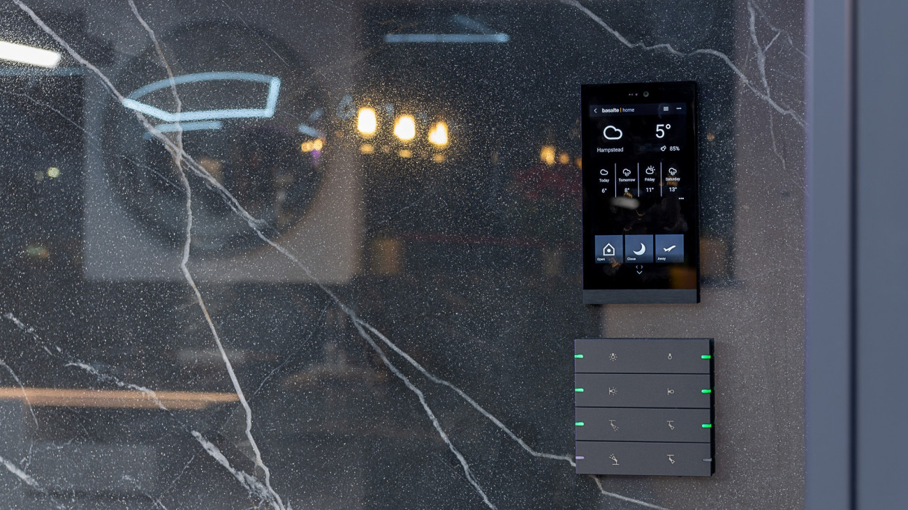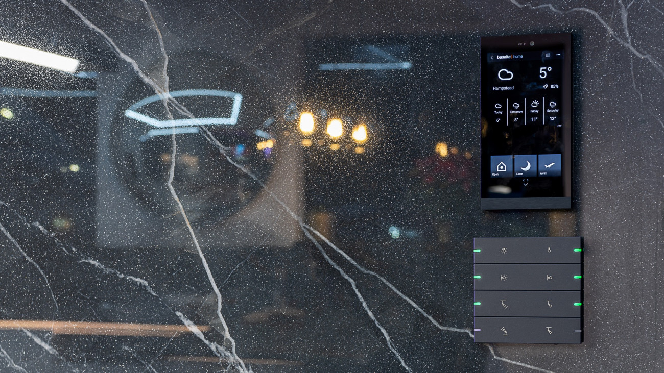 Tunable white downlights and RGBW feature controlled by DALI All pendants are phase-dim PIRs for common areas and bathrooms GIRA Keypads Logic and Scene Control by Basalte Mini Touch screen Basalte Ellie KNX Secure IoT integration.
