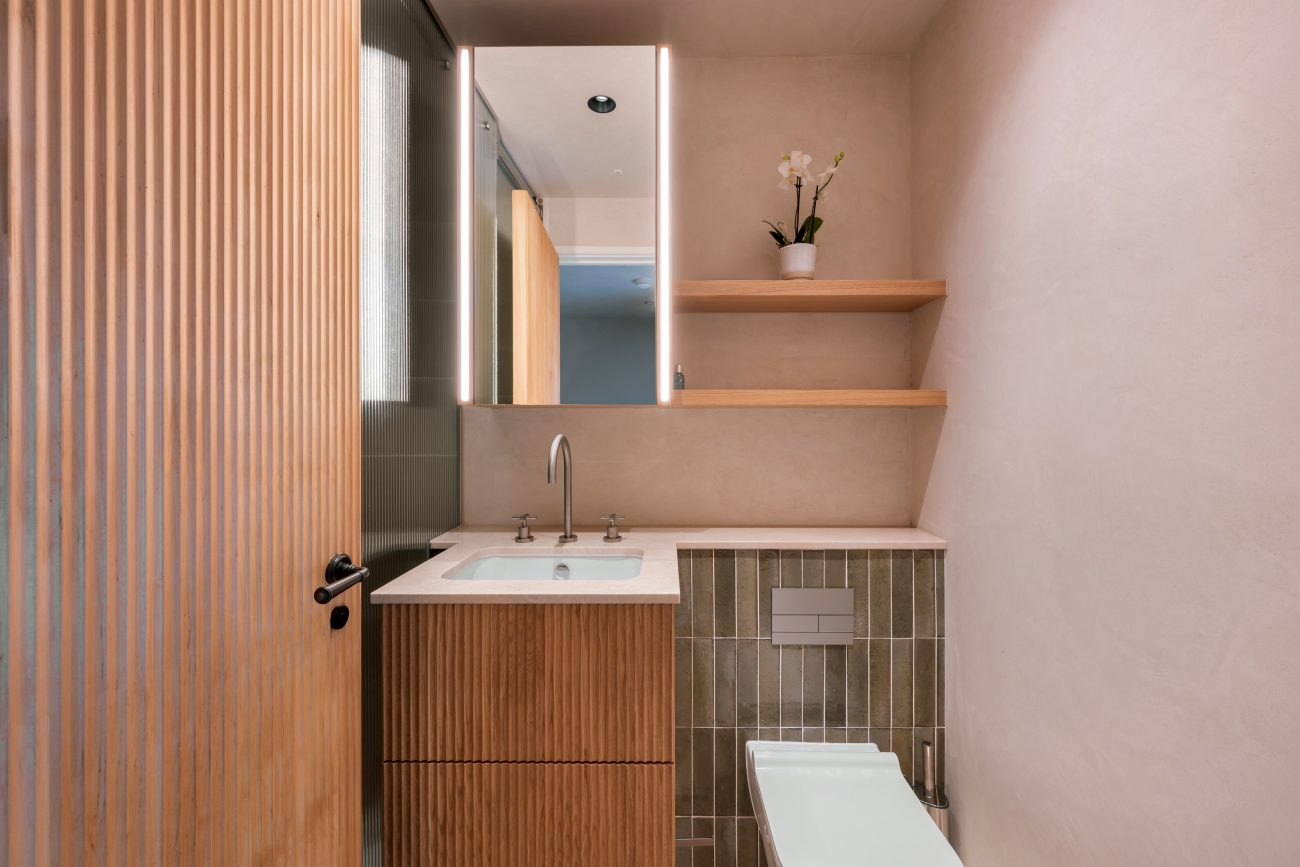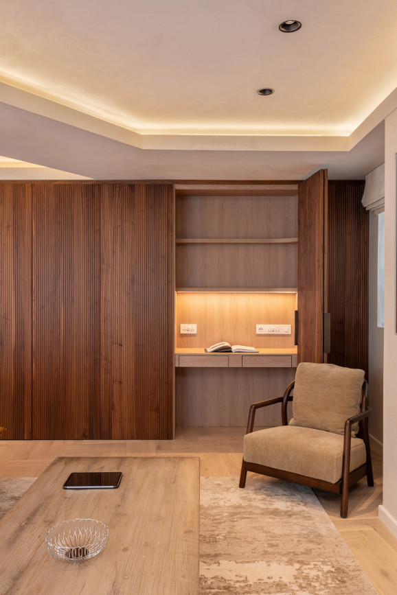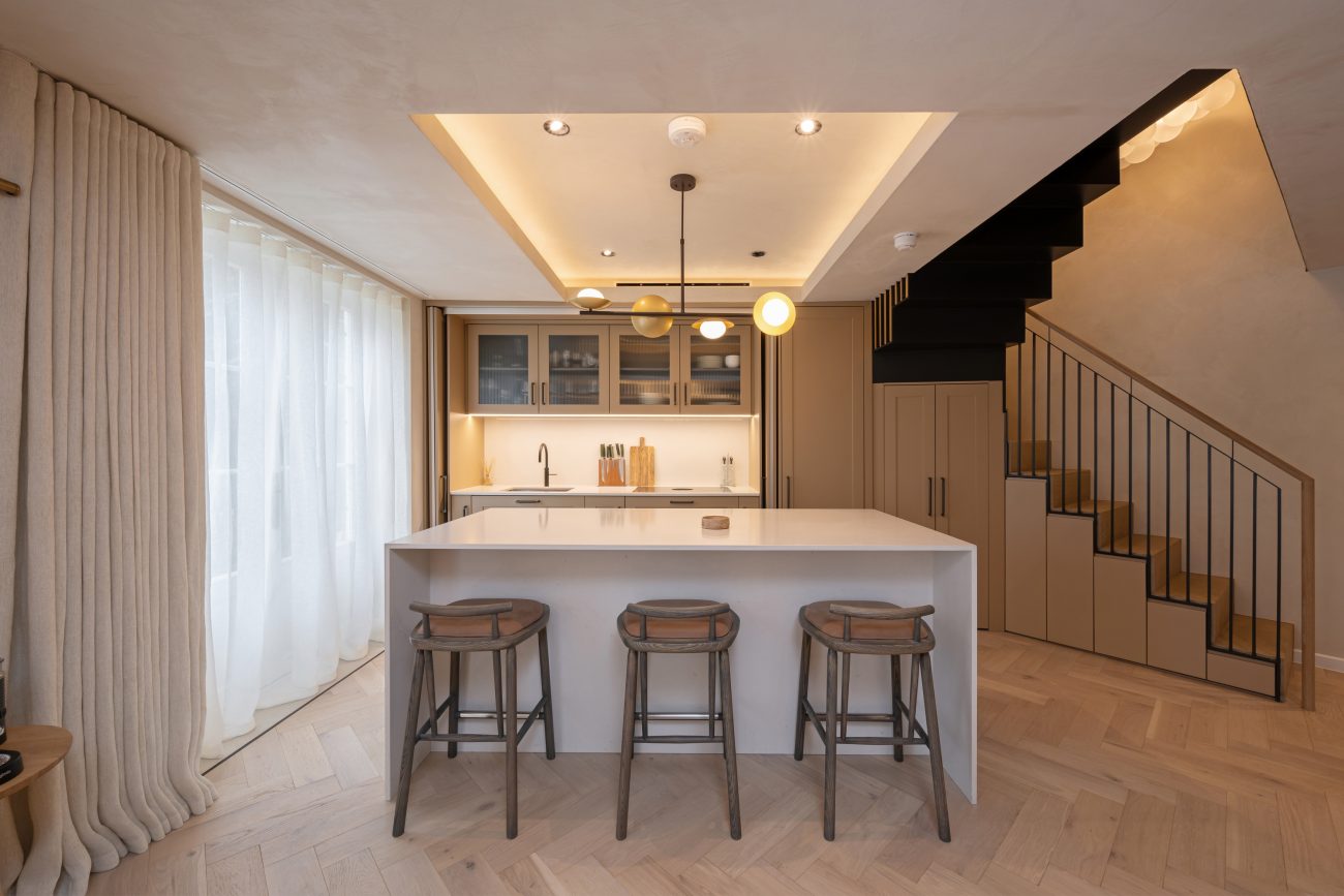 With KNX-based heating and cooling automation, the apartment maintains the perfect temperature year-round. The intelligent system optimizes energy usage while ensuring maximum comfort.