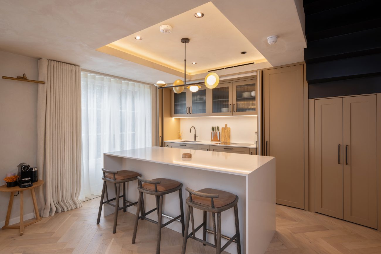 The KNX-controlled blinds adjust automatically based on the time of day and lighting conditions, enhancing privacy, energy efficiency, and comfort at the touch of a button.